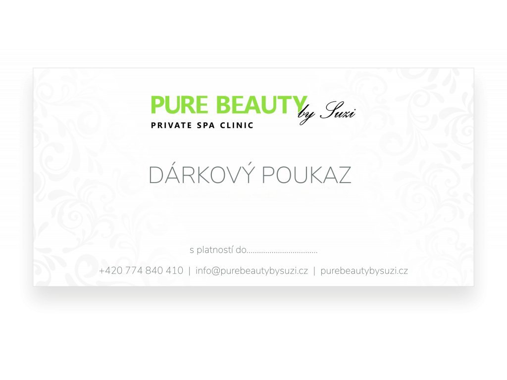 Dárkový poukaz v hodnotě 5 000 Kč na služby nebo produkty v luxusním kosmetickém spa studiu PURE BEAUTY by Suzi. Dárkový poukaz zasílám v papírové podobě (poukaz zašlu na Vámi uvedenou adresu nebo si ho můžete po telefonické domluvě vyzvednout v mém salonu). V případě, že chcete zaslat v elektronické podobě, přidejte poznámku do objednávky.